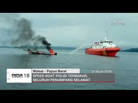 Speed Boat milik satuan Polisi Perairan Polres Raja Ampat terbakar di perairan Waisai, Selasa pagi 24 April 2018, sekitar pukul 10.00 waktu setempat, 13 orang penumpang dan kru dilaporkan selamat.