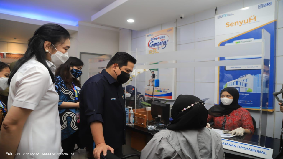 Jakarta – Menteri Badan Usaha Milk Negara (BUMN) RI, Erick Thohir mengajak para finalis Girls Takeover mengunjungi langsung Sentra Layanan Ultra Mikro (Senyum) di BRI—Pegadaian—PNM Unit Sentiong, Jakarta pada Selasa (28/09). Pada kegiatan tersebut Erick menunjukkan bentuk sinergi ekosistem ultra mikro yang melibatkan Bank Rakyat Indonesia, Pegadaian, dan PNM (Permodalan Nasional Madani). Holding ultra mikro membuka aksesibilitas layanan keuangan dan pemberdayaan pada segmen ultra mikro agar dapat terus naik kelas.