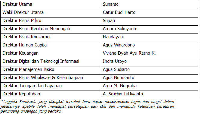 Sehingga susunan baru Direksi dan Komisaris BRI sebagai berikut: