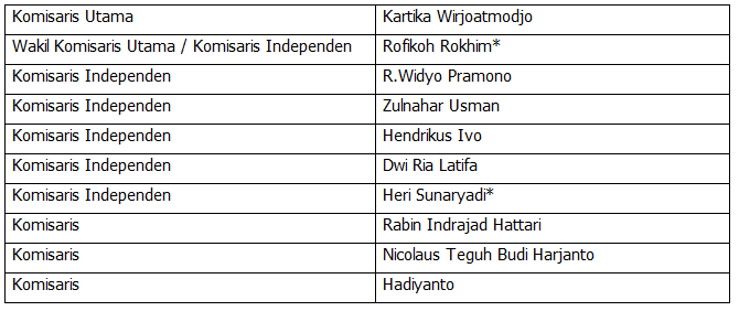 - Rofikoh Rokhim, semula Komisaris Independen, menjadi Wakil Komisaris Utama / Komisaris Independen.