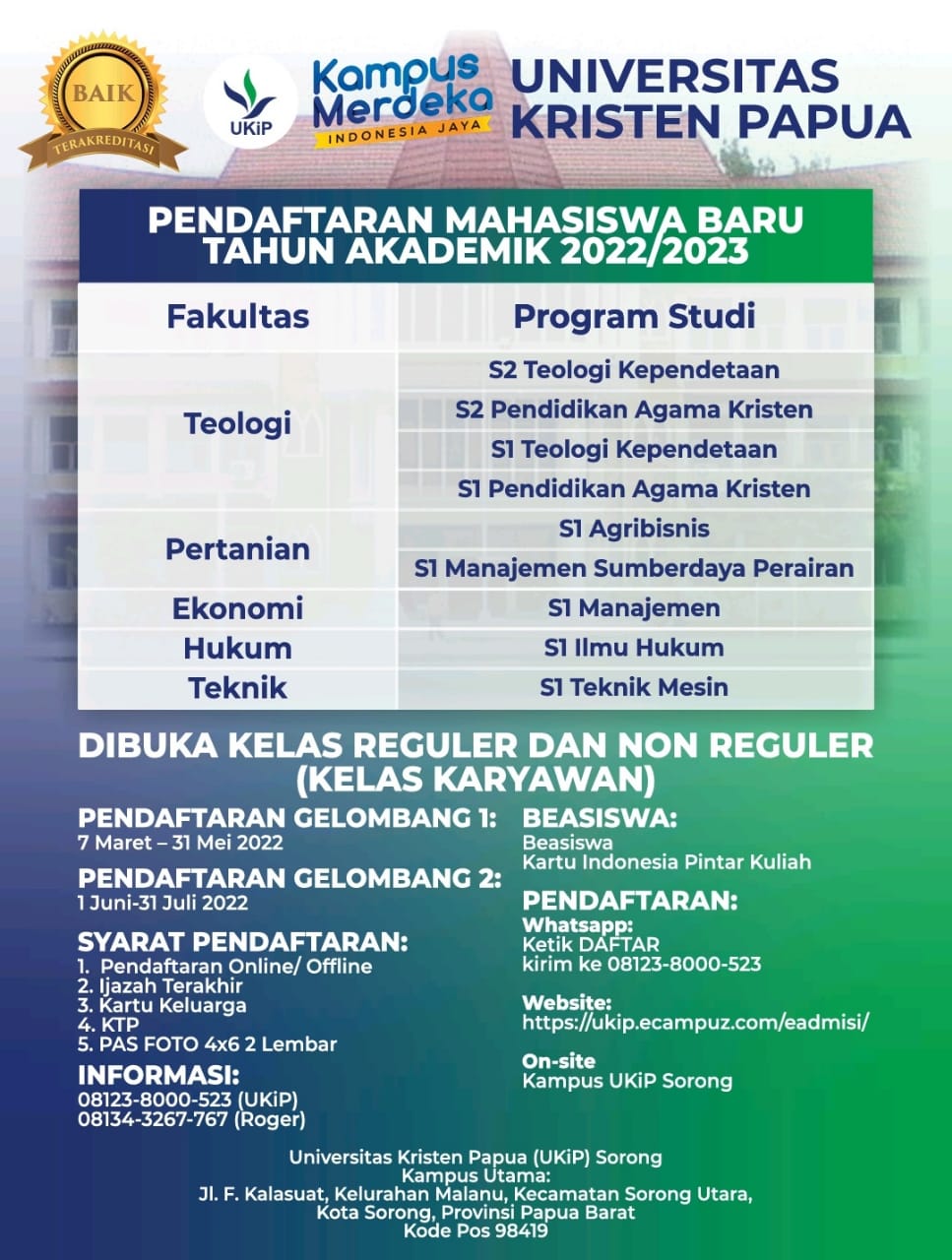 PENDAFTARAN MAHASISWA BARU TAHUN 2022 UKIP SORONG SUDAH DIBUKA, YUK DAFTAR KULIAH!