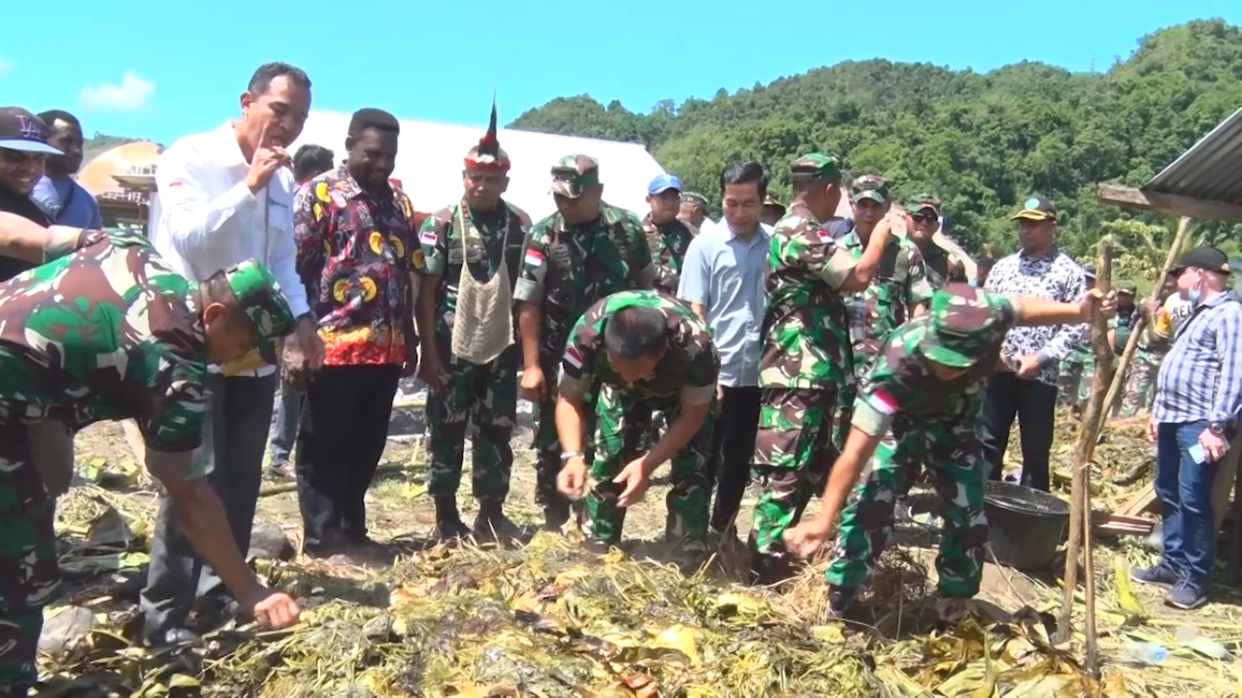 Pangdam bahkan turut serta bersama warga dalam upacara bakar batu. Mulai dari menyiapkan batu, membakarnya, hingga menyelipkan bahan-bahan makanan di antara tumpukan batu yang telah dibakar.