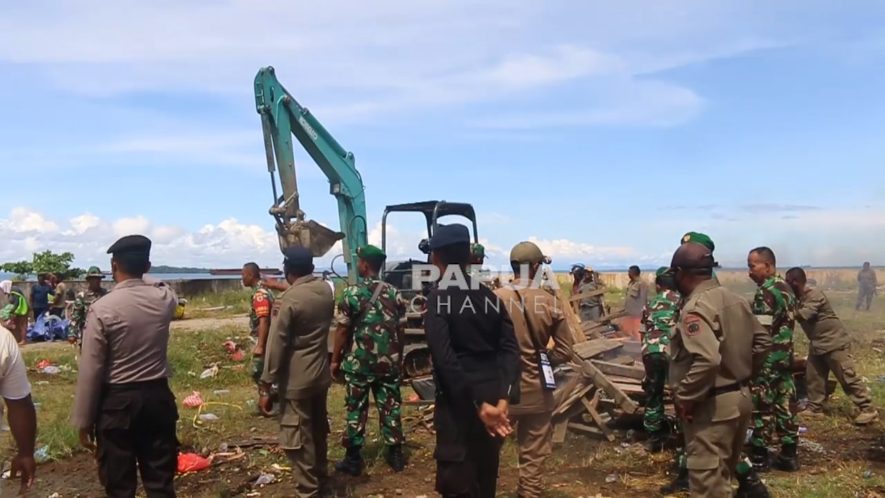 Lahan eks pasar Boswesen Kota Sorong, Papua Barat akhirnya dikosongkan total. Pembongkaran lapak-lapak yang masih berdiri dilaksanakan Rabu 28 September 2022.