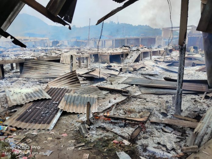 Abepura, Papuachannel.com – Sebanyak 173 Kios dan Lapak dagangan di Pasar Youtefa habis dilahap Si Jago Merah pagi tadi. Asal api diduga dari Los A Pasar Youtefa Distrik Abepura, Sabtu (7/1) pagi sekitar Pukul 05.30 WIT.