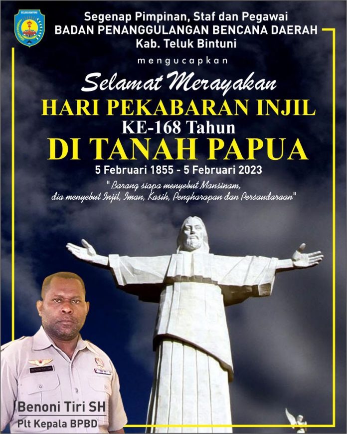 Papua Update BPBD Kab. Teluk Bintuni Mengucapkan Selamat Merayakan Hari Pekabaran Injil Ke-168 di Tanah Papua By Administrator - February 6, 2023 0 3828