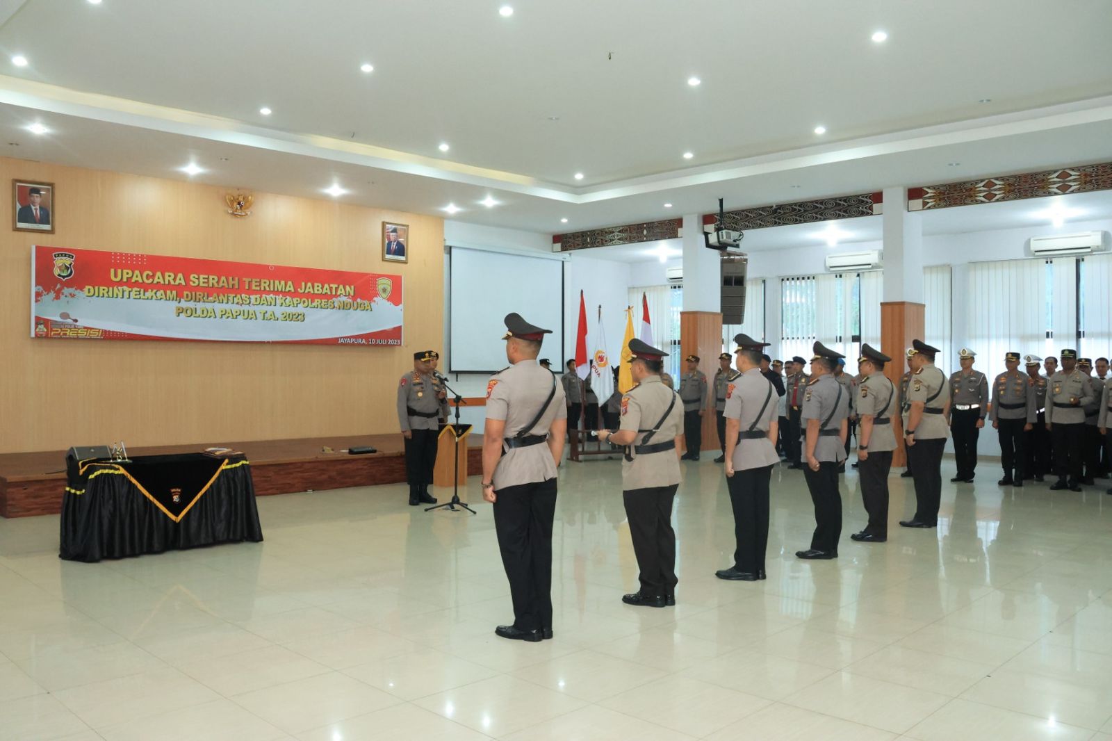 Jayapura, papuachannel.com – Kapolda Papua Irjen pol Mathius D. Fakhiri memimpin langsung upacara serah terima jabatan dua pejabat utama Polda Papua dan satu Kapolres di Aula Rastra Samara Polda Papua, Kota Jayapura, Senin pagi (10/7/2023)